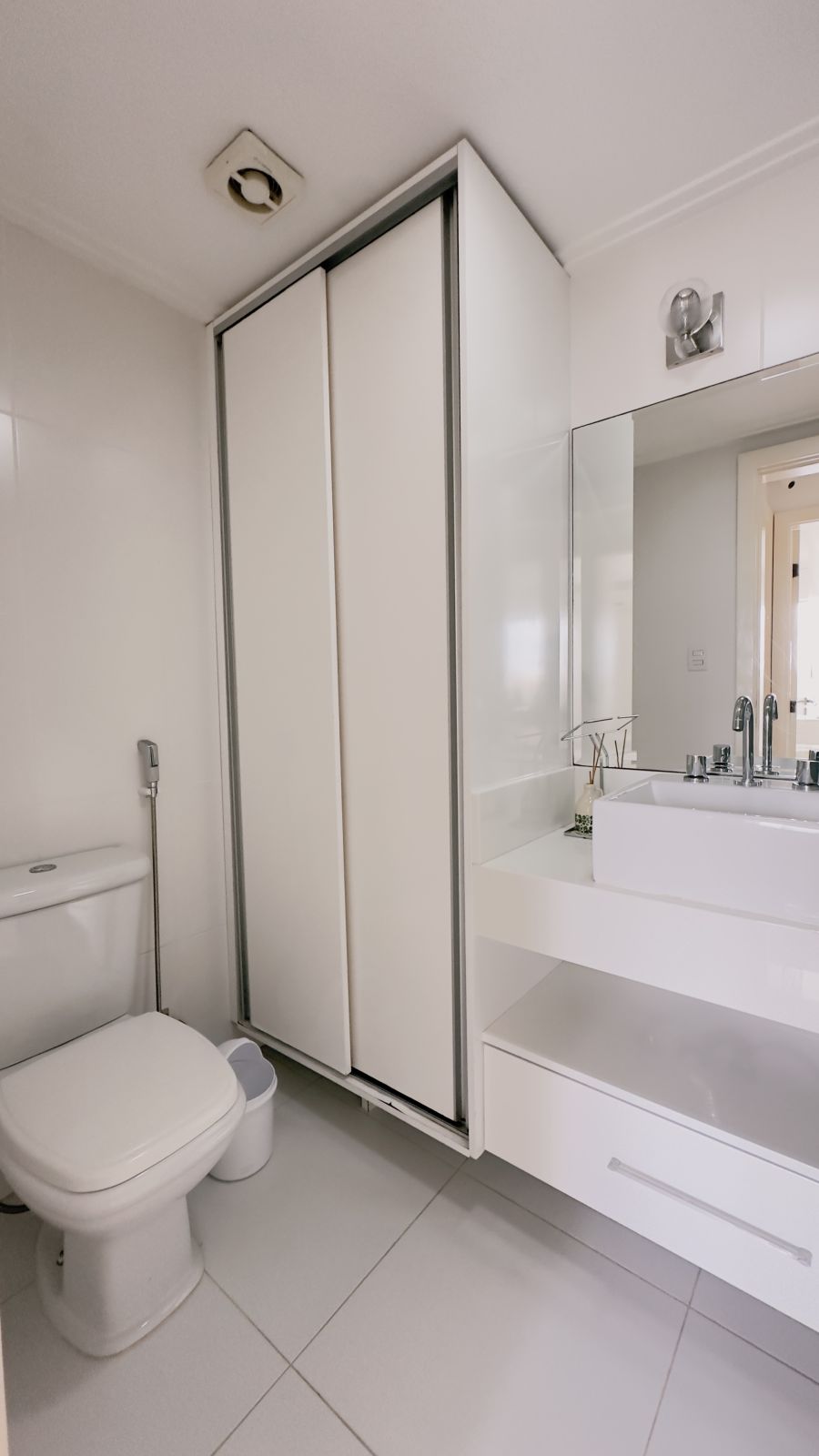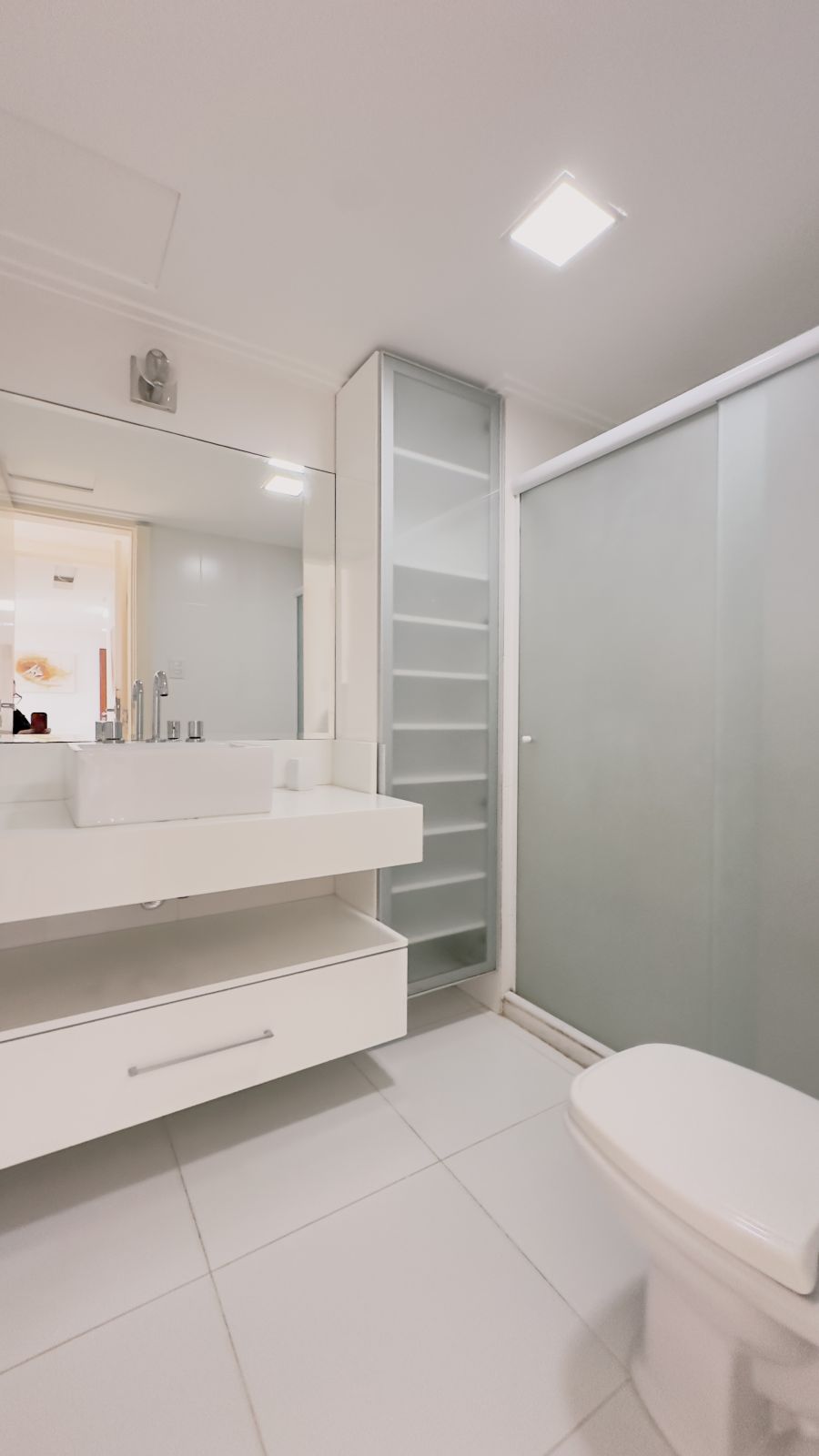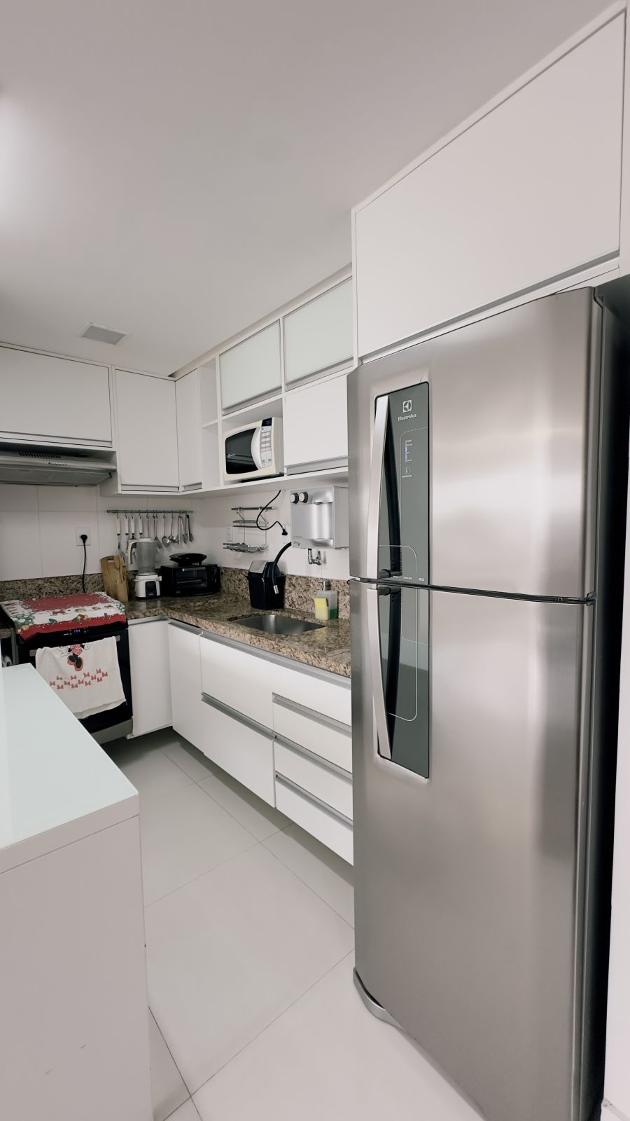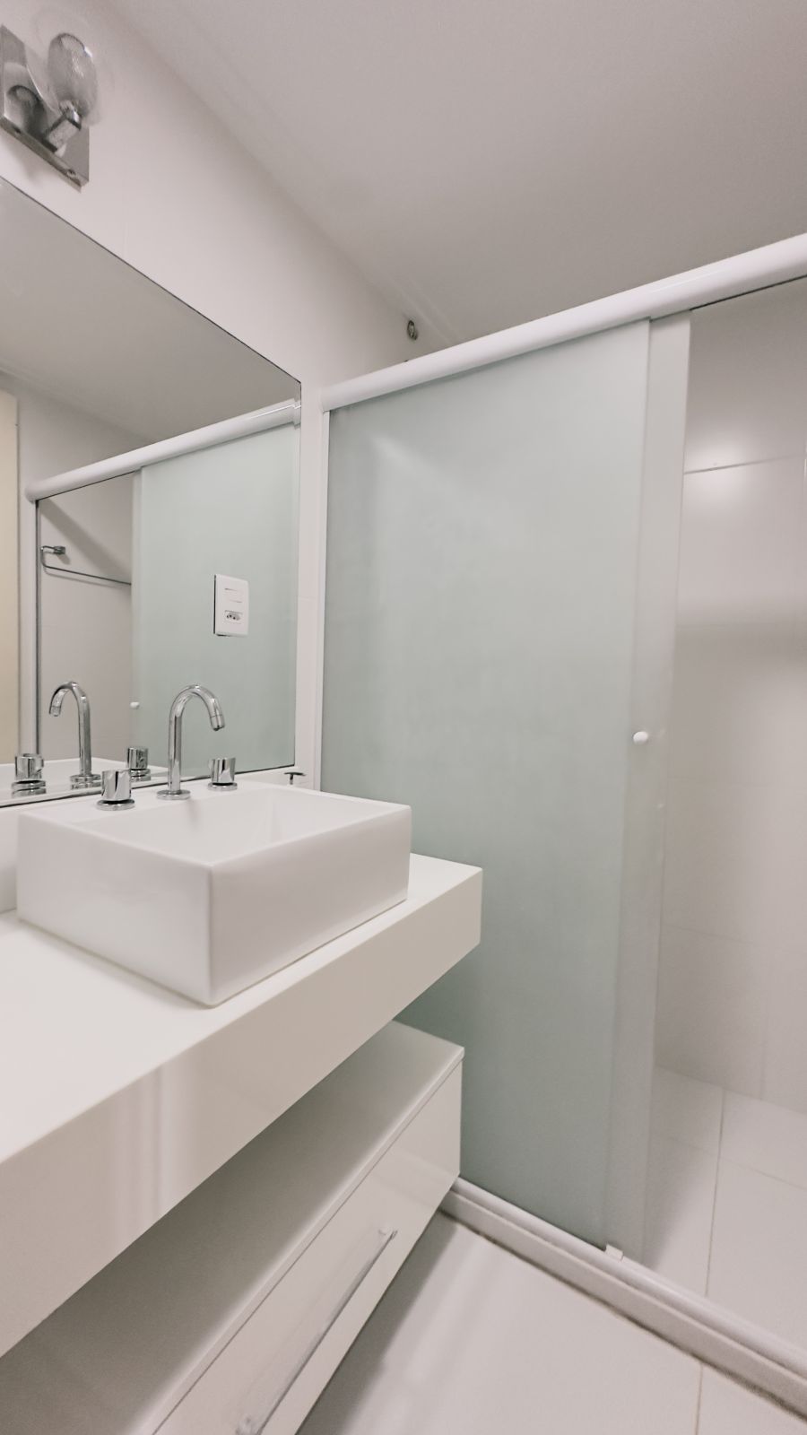 Apartamento 2/4, sendo 1 suíte, com banheiro social, cozinha americana e 1 vaga de garagem coberta.
